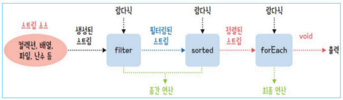 - 여러 중간 연산을 연결하여 복잡한 데이터 처리 파이프라인을 구성